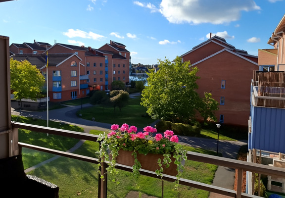 3 rok med balkong mot innergården – trivsamt boende i Kakelugnen
