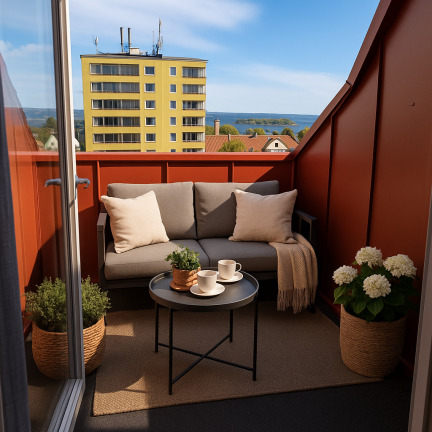 - Balkong med härlig utsikt över havet – en perfekt plats för morgonkaffet eller kvällens lugna stund