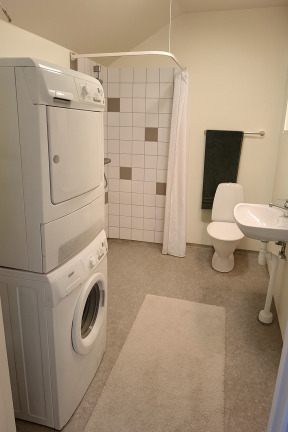 - Badrum utrustat med tvättpelare (tvättmaskin och torktumlare)