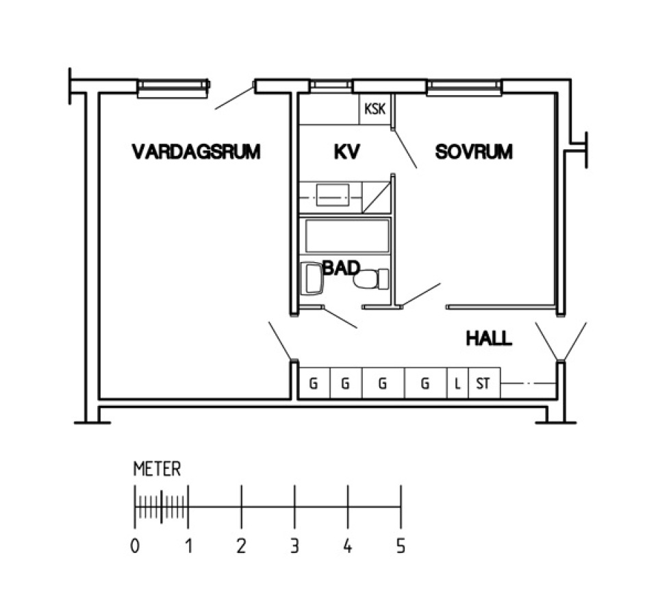 Väggar i hall, kokvrå, sovrum och vardagsrum är nyligen målade i ljus kulör. Badrum med dusch. Kokvrå!
