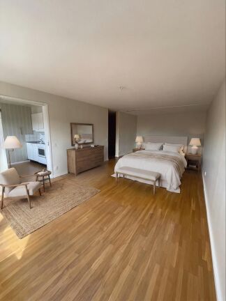Lägenheten erbjuder en flexibel planlösning där vardagsrum och sovalkov samspelar på ett praktiskt sätt. Den rymliga sovalkoven kan enkelt avskärmas för att skapa en mer privat sovdel, vilket gör bostaden både funktionell och anpassningsbar efter dina behov.