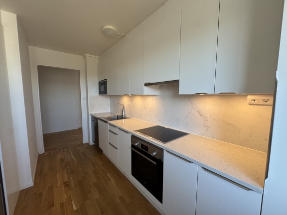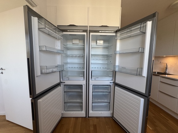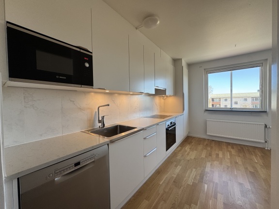 - Ljust kök med hel kyl och frys, diskmaskin samt inbyggda vitvaror