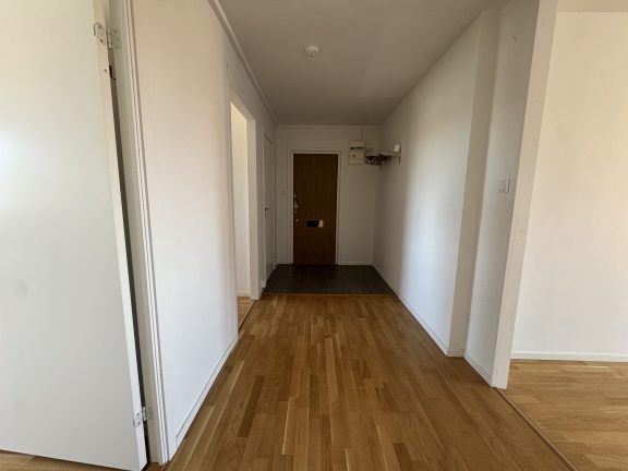 Du möts av en ljus och välkomnande hall med praktiska garderober som ger god förvaring. Köket är modernt och går i vitt med hög standard och rostfria vitvaror – perfekt för både vardagsmatlagning och sociala tillfällen. Vardagsrummet är rymligt och erbjuder plats för både soffgrupp och matbord, vilket gör det till hemmets naturliga samlingspunkt. Härifrån når du även balkongen i söderläge där du kan njuta av solen större delen av dagen.