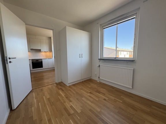 Bostaden har genomgående vitmålade väggar och ekparkett i alla torra utrymmen, vilket skapar en ljus och enhetlig känsla. Det helkaklade badrummet är utrustat med klinkergolv med golvvärme, dusch och egen tvättmaskin för extra komfort i vardagen.