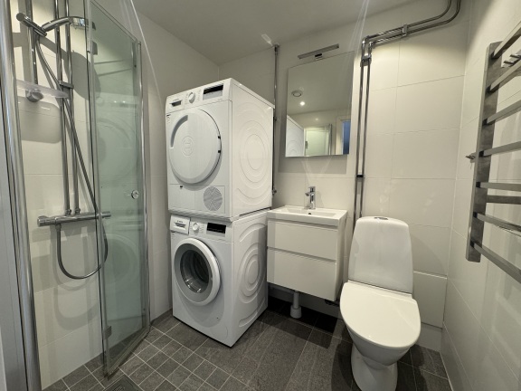 - Helkaklat badrum med golvvärme och tvättmaskin