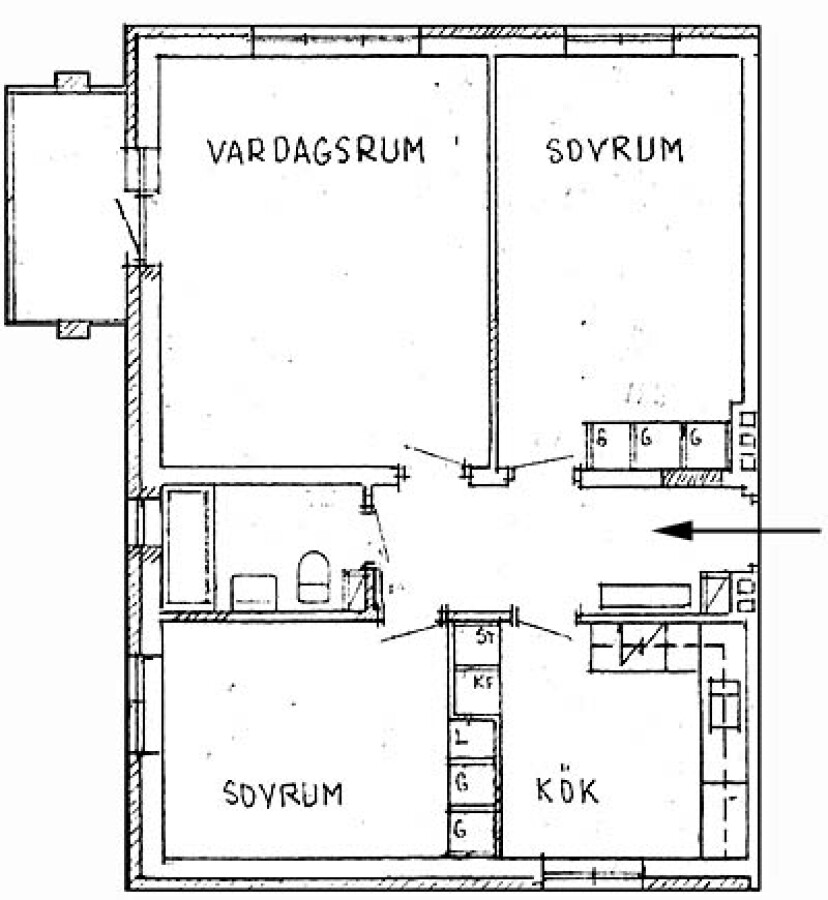 Mysig hörnlägenhet på första våningen vid Sandbäcksskolan. Välplanerad och hemtrevlig. Kaklat badrum med dusch. Balkong som vetter ut mot innergård. Finns plats för egen tvättmaskin.