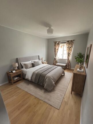 Lägenheten erbjuder en välplanerad planlösning med ljusa och inbjudande ytor. Här finns ett renoverat kök med diskmaskin (45 cm bred), två rymliga sovrum med parkettgolv samt ett vardagsrum med utgång till balkong i västerläge. Balkongen vetter mot innergården och blir en perfekt plats att njuta av eftermiddagssol och lugna stunder.
