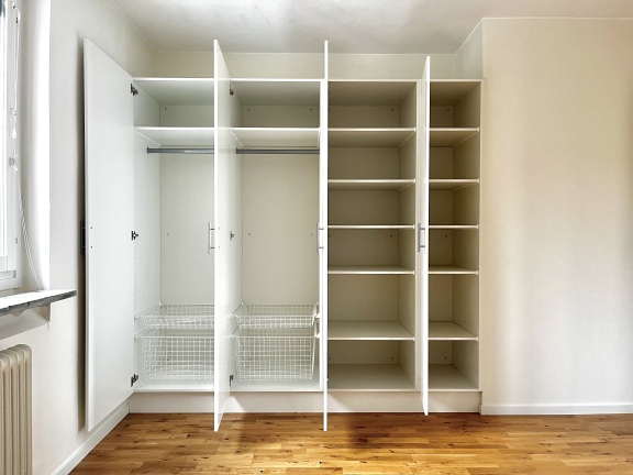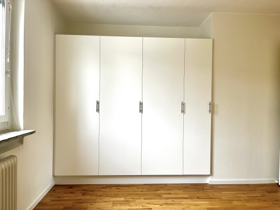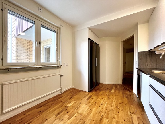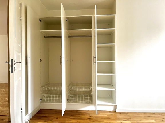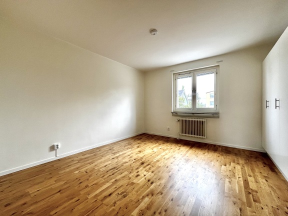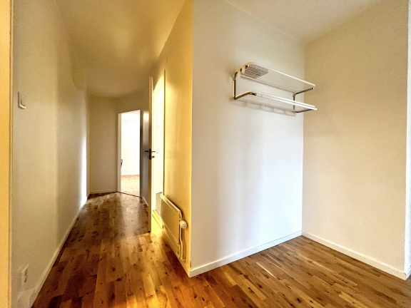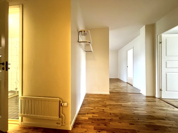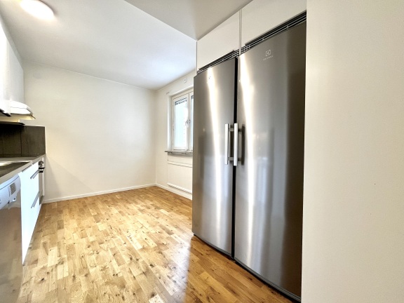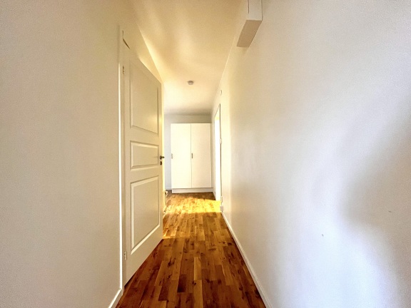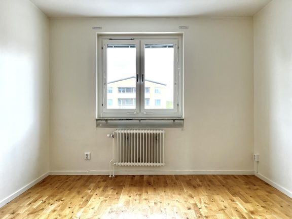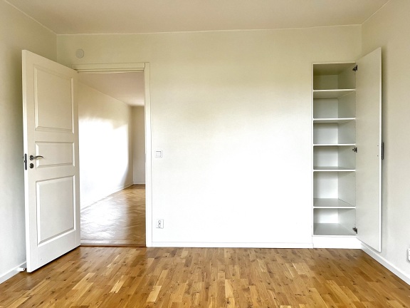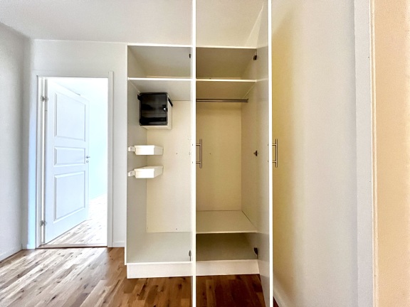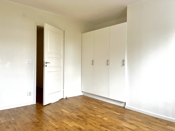 I övrigt är lägenheten enhetligt målad i ljus kulör och parkettgolv ligger i alla rum. Mycket gott om förvaring i båda sovrummen.