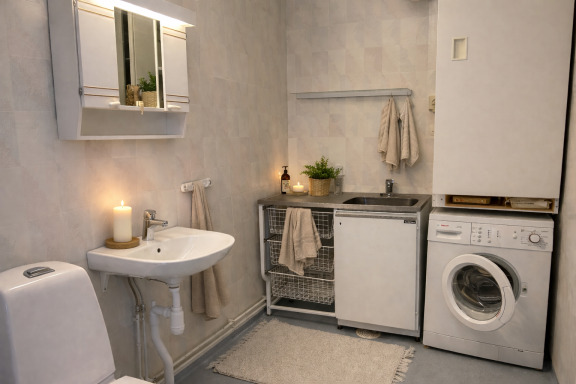 Lägenheten har två rum och kök med en genomtänkt planlösning som passar dig som söker både rymd och funktion. Den egna ingången leder till en uteplats där du kan njuta av morgonkaffet eller lugna stunder utomhus. Vardagsrummet är stort och ljust med ett härligt ljusinsläpp och gott om plats för både soffgrupp och matplats. Köket erbjuder bra förvaring och generösa ytor för matbord och stolar, perfekt för både vardag och sociala tillfällen. Badrummet är rymligt och utrustat med tvättmaskin för extra bekvämlighet.