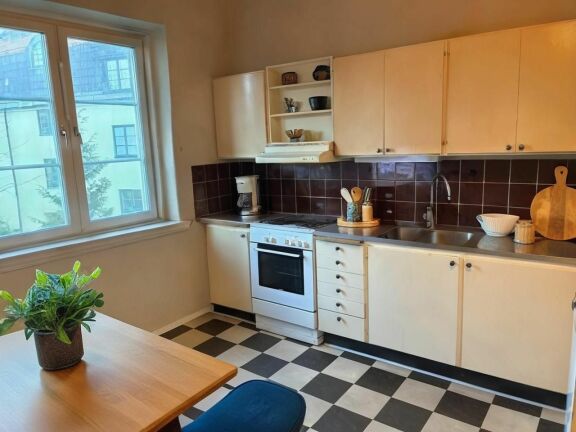 Genomgående enrumslägenhet med rymligt kök och goda förvaringsmöjligheter