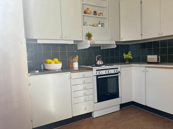 - Köksuppdatering med nya köksluckor, stänkskydd och bänkskiva – 248 kr/mån