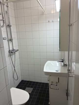 Bostaden erbjuder ett praktiskt kök med goda arbetsytor och bra förvaring samt direkt utgång till balkongen i soligt söderläge – en härlig plats för morgonkaffet eller avkoppling i solen. Vardagsrummet är lättmöblerat och rymmer både soffgrupp och matplats, vilket gör det till en naturlig samlingspunkt i hemmet. Det helkaklade badrummet är utfört i stilrena och tidlösa material som ger ett fräscht och modernt intryck. Lägenhetens genomtänkta planlösning gör att varje kvadratmeter tas till vara på ett effektivt och trivsamt sätt.