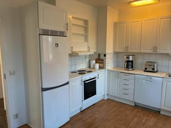 Denna hörnlägenhet erbjuder ett ljust och funktionellt hem med en genomtänkt planlösning. Badrummet Helkalklat med moderna bekvämligheter. Köket är utrustat med diskmaskin och har gott om förvaringsmöjligheter.