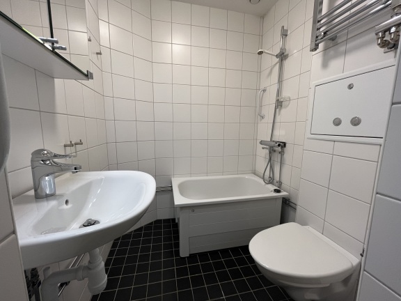 Lägenheten genomgick ett stambyte 2020, vilket innebär att både kök och badrum håller god standard. Det helkaklade badrummet är stilrent utformat och utrustat med ett mindre badkar. Köket är funktionellt och inbjudande med plats för ett mindre matbord samt diskmaskin, varmluftsugn med glaskeramikhäll, vita köksluckor, mörkgrått kakel och ljus bänkskiva. Vardagsrummet präglas av vacker fiskbensparkett och erbjuder utgång till balkongen i söderläge – perfekt för att njuta av solen större delen av dagen.