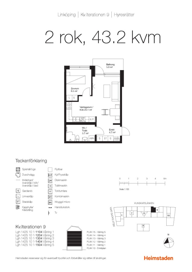 Det helkaklade badrummet är stilrent och funktionellt, med kommod, spegel, handdukstork, duschhörna i glas samt en kombinerad tvätt- och torkmaskin. På den mysiga balkongen kan du slå dig ner med en kopp kaffe eller bjuda vänner på en avkopplande stund utomhus.