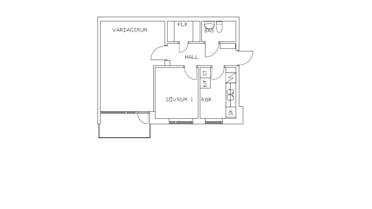 - Köket är utrustat med kombinerad kyl och frys samt spis med ugn. Här finns bra arbetsytor och skåpsförvaring.