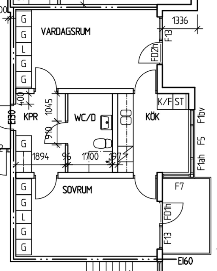 Ljus lägenhet med rymligt sovrum (plats för dubbelsäng) och kök med god förvaring samt matplats vid fönster. Helkaklat badrum med dusch. Belägen på våning 5 med balkong och fin utsikt.