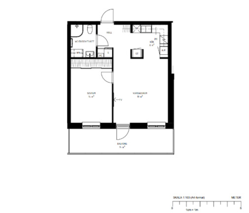Här möts du av en inbjudande hall som leder dig vidare till en öppen och luftig planlösning mellan kök och vardagsrum, vilket skapar en social och trivsam atmosfär. Köket är modernt och fullt utrustat med en praktisk diskmaskin, medan badrummet har en kombinerad tvätt och torktumlare för extra bekvämlighet. Sovrummet har generösa förvaringsmöjligheter och erbjuder en lugn och avkopplande miljö.