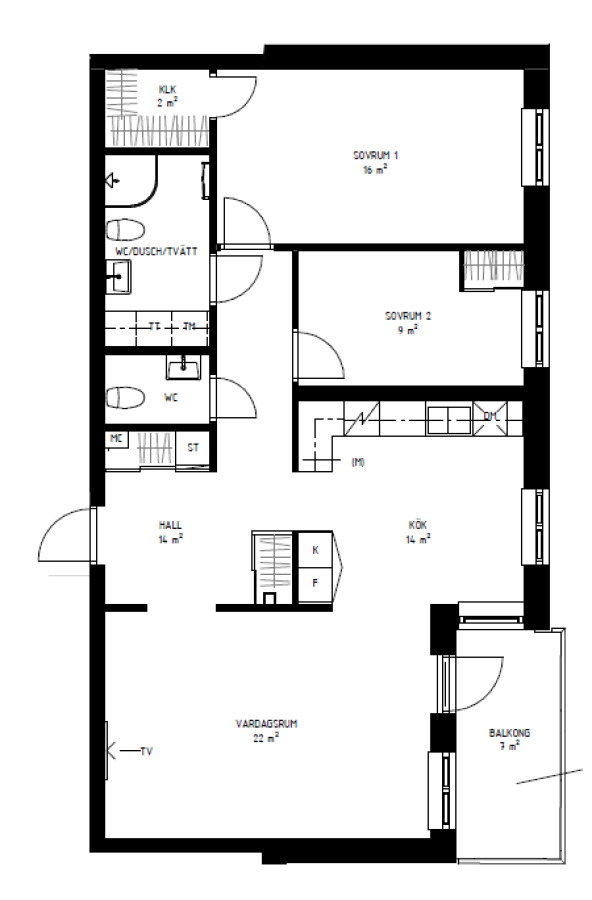 Från det ljusa vardagsrummet når du balkongen, perfekt för avkoppling i solen eller en kopp kaffe i friska luften. Lägenheten har två sovrum. Det större sovrummet har en egen klädkammare med gott om plats för kläder och förvaring, medan det mindre sovrummet är utrustat med en praktisk skjutdörrsgarderob. Även i hallen finns goda förvaringsmöjligheter som underlättar vardagen.