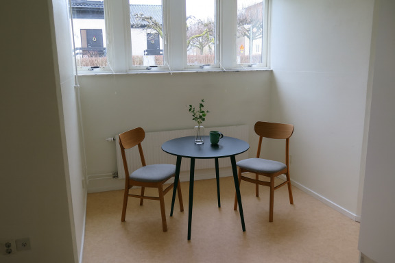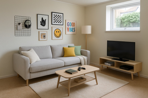 Den ljusa tvåan erbjuder en öppen planlösning mellan kök och vardagsrum som skapar en luftig och inbjudande känsla. Stora fönster ger fint ljusinsläpp trots suterrängläget, och planlösningen gör bostaden både trivsam och funktionell. Här finns gott om plats för både umgänge och avkoppling i ett välplanerat hem med modern grundstandard.