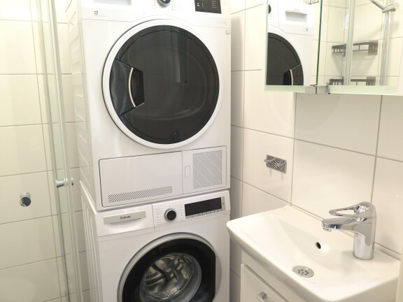 - Helkaklat badrum med egen tvättmaskin, torktumlare och handdukstork