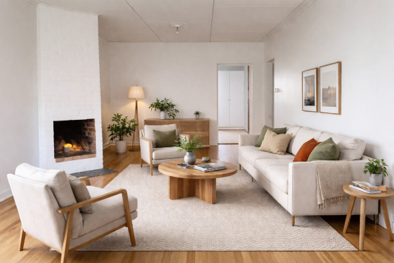 • Rymligt vardagsrum med vacker öppen spis och utgång till balkong