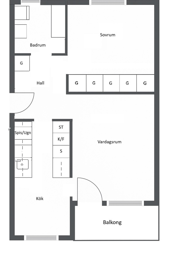 - Lättillgängligt förråd utanför lägenhetsdörren.