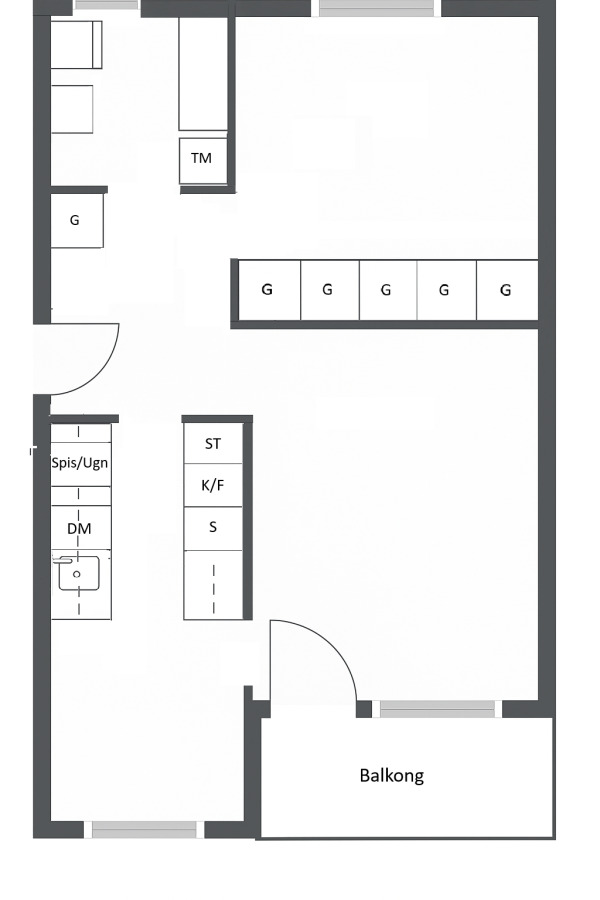 - Vardagsrummet är lättmöblerat med plats för både soffa och tv-möbel, och härifrån når du även den trevliga balkonge