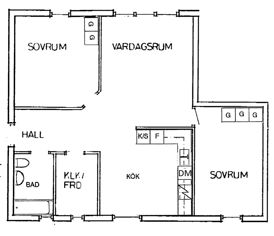 Lägenheten erbjuder två rymliga sovrum, varav det ena är större med plats för dubbelsäng och god förvaring i flera garderober. Det andra sovrummet lämpar sig väl för olika behov, såsom arbetsrum, gästrum eller barnrum.