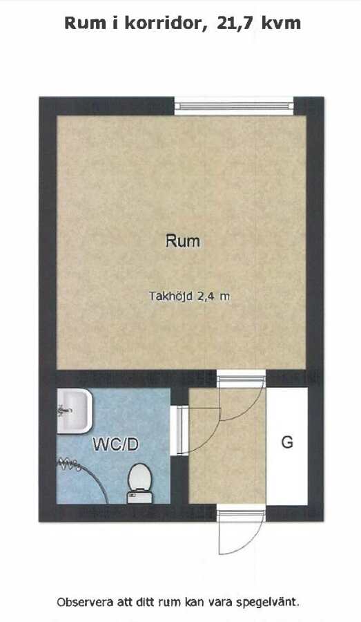 Rummen är cirka 22 kvm och utrustade med kokskåp, kyl, frys, spis, WC och dusch. Alla rum är möblerade för att du enkelt ska kunna flytta in och börja studera direkt.