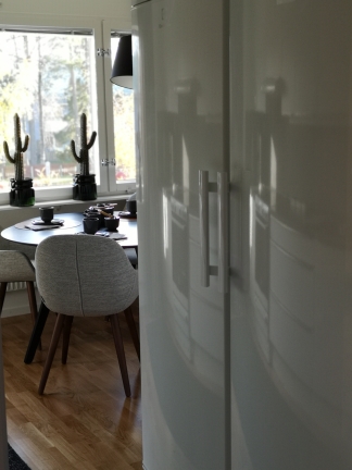 - Genomgående vitmålade väggar, tak och snickerier