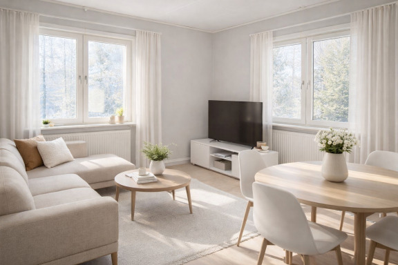Observera att vissa bilder kan vara digitalt förbättrade med hjälp av AI-teknik för att ge en tydligare och mer representativ bild av bostaden. Smärre justeringar såsom ljussättning, borttagning av stök eller visuell städning kan förekomma.