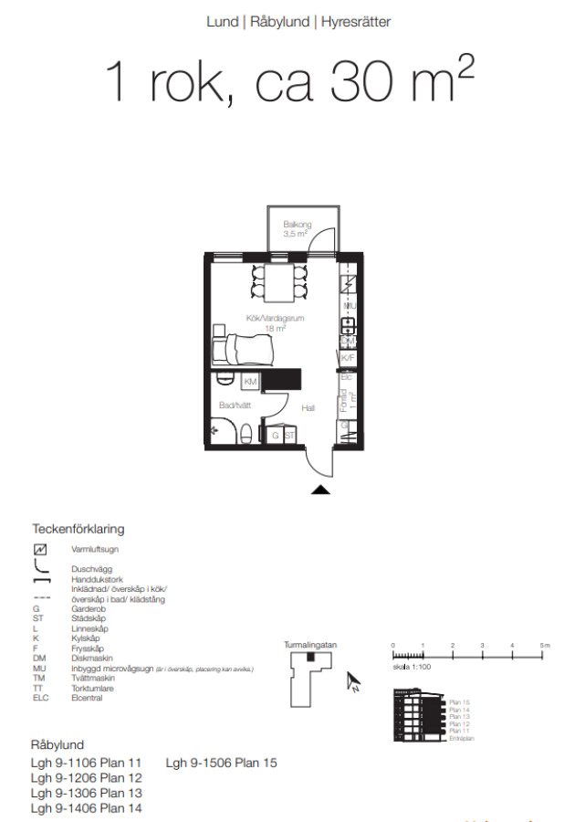 Särskilt kännetecknande för lägenheterna är öppna planlösningar mellan kök och vardagsrum, väl tilltagna fönster med bra ljusinsläpp. Här finns garderober med gott om förvaring samt integrerade förråd i merparten av lägenheterna. Majoriteten av lägenheterna kommer att få balkong eller uteplats, utom de allra minsta som får spanska balkonger.