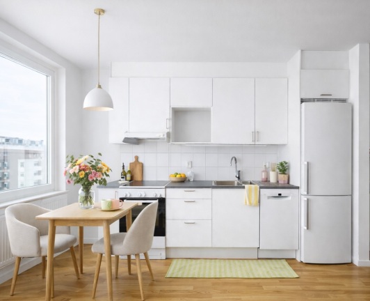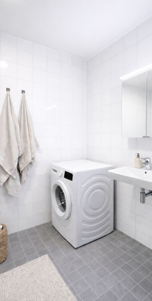 När du kliver in i lägenheten möts du av en praktisk hall med ett klinkergolv i grå kulör, en förmonterad hatthylla och bra förvaring. Det genomgående golvet i ekparkett tar dig sedan vidare in i lägenhetens olika rum. De vitmålade väggarna skapar ljus och ger dig möjlighet att sätta din egen inredningsstil. Det fullt utrustade köket är inrett i en vit färgskala med vitkaklat stänkskydd och grå bänkskiva. Här blir det enkelt att tillaga favoriträtterna med bra förvaring och funktionella arbetsytor. Köket är utrustat med diskmaskin, spis, kyl och frys. Ett rofyllt sovrum med praktiska garderober som erbjuder goda förvaringsmöjligheter. Badrummet är helkaklat i vitt med grått klinkergolv. Det är utrustat med vikbara duschväggar i glas, handdukstork samt kombimaskin, vilket gör att du kan tvätta på den tid som passar dig. Öppen planlösning mellan kök och vardagsrum, väl tilltagna fönster med bra ljusinsläpp. Här finns gott om förvaring samt integrerade förråd i merparten av lägenheterna.