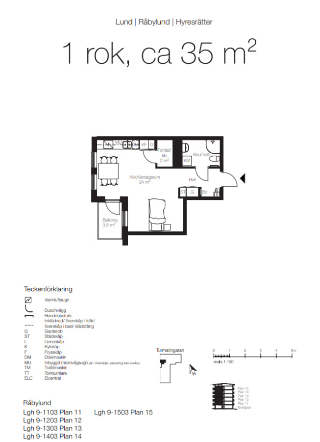 Särskilt kännetecknande för lägenheterna är öppna planlösningar mellan kök och vardagsrum, väl tilltagna fönster med bra ljusinsläpp. Här finns garderober med gott om förvaring samt integrerade förråd i merparten av lägenheterna. Majoriteten av lägenheterna kommer att få balkong eller uteplats, utom de allra minsta som får spanska balkonger.