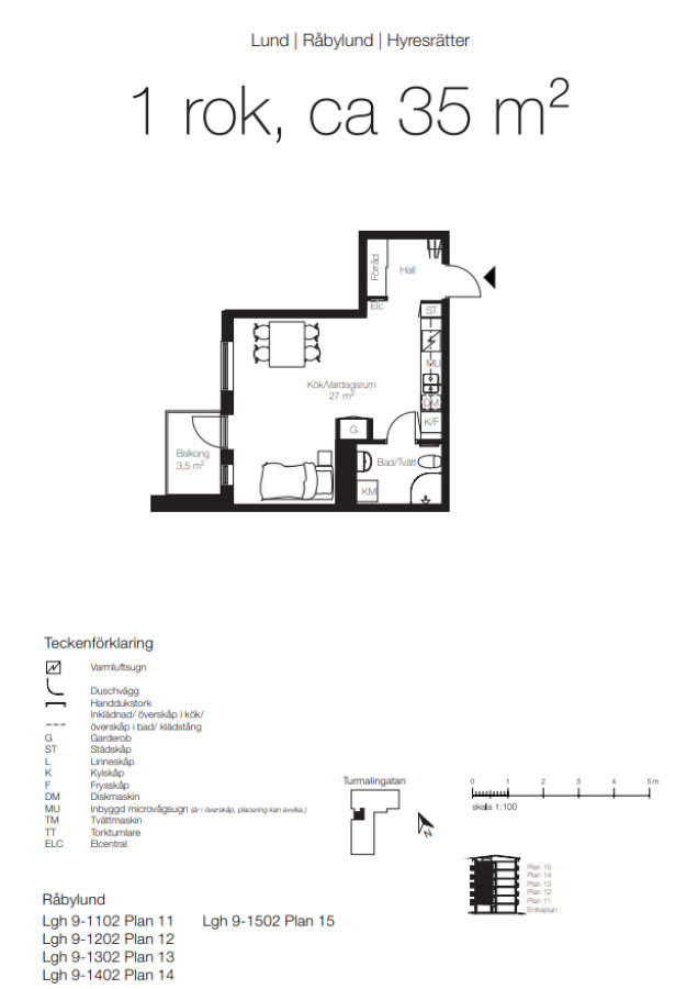 Särskilt kännetecknande för lägenheterna är öppna planlösningar mellan kök och vardagsrum, väl tilltagna fönster med bra ljusinsläpp. Här finns garderober med gott om förvaring samt integrerade förråd i merparten av lägenheterna. Majoriteten av lägenheterna kommer att få balkong eller uteplats, utom de allra minsta som får spanska balkonger.