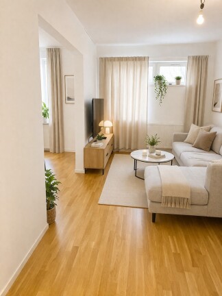 Lägenheten är belägen på andra våningen med en storlek på 42 kvadratmeter. Den egna entrén via loftgång ger en privat och bekväm känsla redan från första steget in. Bostaden erbjuder en smart planlösning och med generösa förvaringsmöjligheter. Genomgående parkettgolv och vita väggar skapar en ljus och modern bas.