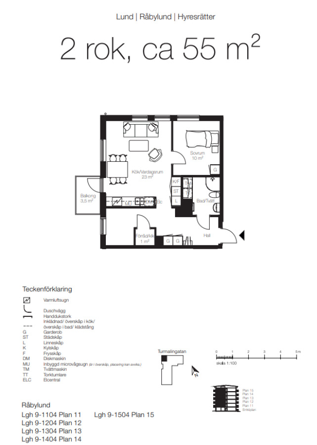 • Lägenheten är utrustad med tvättmaskin och torktumlare
