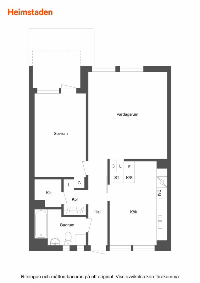 Vardagsrummet erbjuder ljusa väggar och ekparkett som ger en varm och inbjudande atmosfär. Här finns gott om plats för både soffgrupp och matplats. Sovrummet är rymligt med plats för dubbelsäng samt ytterligare möblemang, här når du den härliga balkongen där du kan njuta av solen under stora delar av dagen. Badrummet är helkaklat med klinkergolv och utrustat med wc, tvättställ, dusch, golvvärme och handdukstork, tvättmaskin och torktumlare finns inte. Bilderna i annonsen är redigerade med AI och kan avvika något från verkligheten