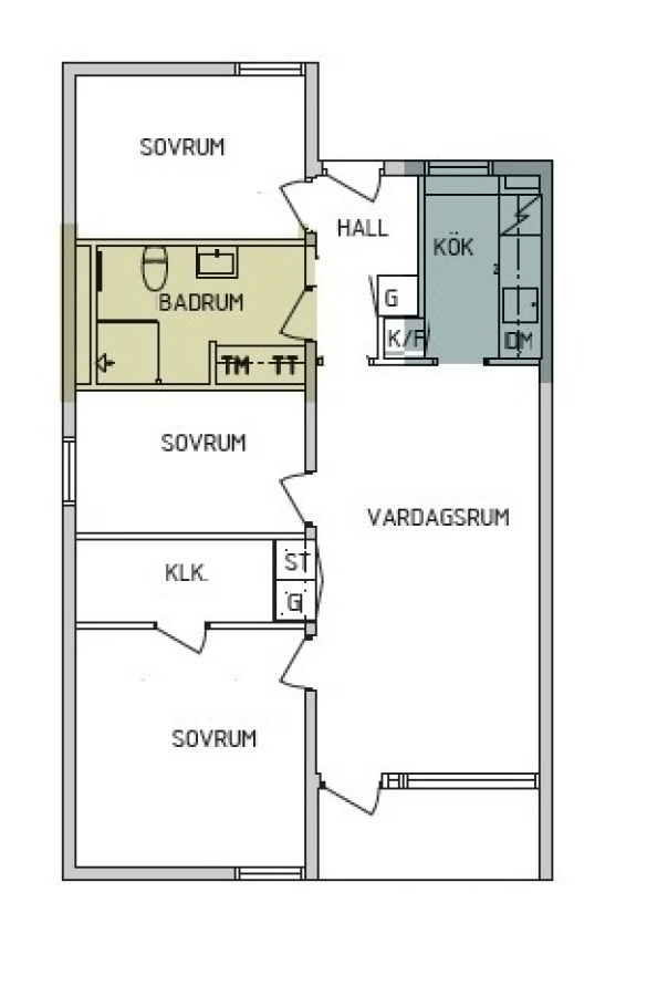 Lägenheten har tre välplanerade sovrum, varav det ena med rymlig klädkammare. Förvaringsmöjligheterna är generösa tack vare bevarade originalskåp i hallen samt städ- och linneskåp i vardagsrummet.