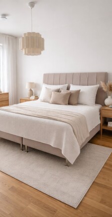Ekparkett löper genom bostaden och de vitmålade väggarna skapar ett ljust, neutralt uttryck som gör det enkelt att sätta din egen prägel. Köket går i en stilren grå färgskala med vitkaklat stänkskydd och grå bänkskiva. Utrustat med diskmaskin, induktionshäll, inbyggnads varmluftsugn, mikrovågsugn, kyl och frys. Badrummet är helkaklat i vitt med grått klinkergolv och utrustat med vikbara duschväggar i glas, handdukstork, kommod och tvättpelare. Två välplanerade sovrum utrustat med garderober. Vardagsrum med utgång till balkong.