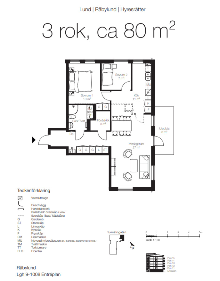- Lägenheten är utrustad med tvättmaskin och torktumlare