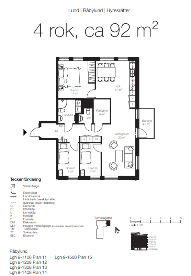 • Lägenheten är utrustad med tvättmaskin och torktumlare