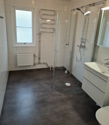 • Rymligt badrum med förberedelse för toppmatad tvättmaskin