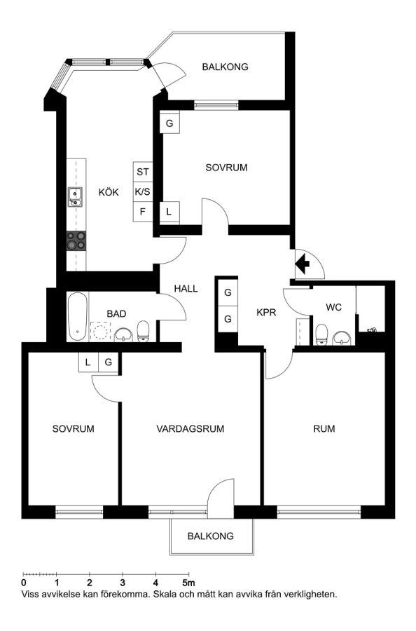• Genomgående fyrarummare med två balkonger