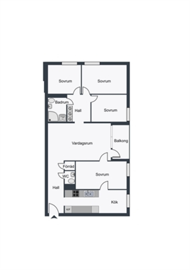 Utöver detta erbjuder lägenheten 4 sovrum med plats för säng och övrigt möblemang.
