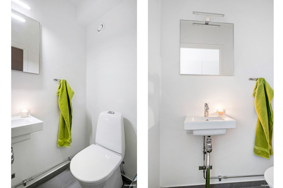 • Modernt helkaklat badrum med dusch och tvättpelare samt separat gäst-WC.