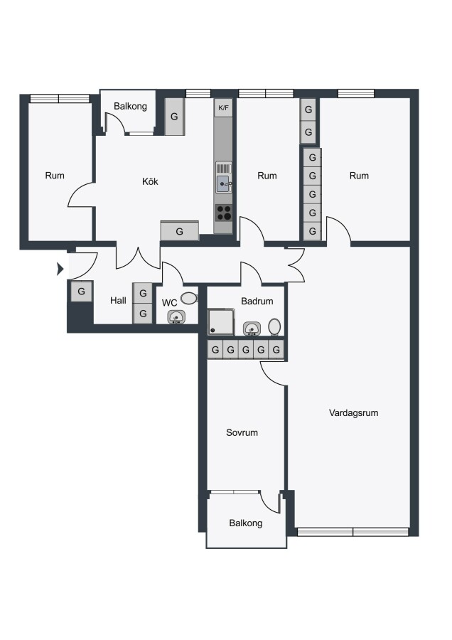 Det helkaklade badrummet har dusch och praktisk tvättpelare, och dessutom finns en gäst-WC för extra bekvämlighet. Lägenheten har två balkonger – en med morgonsol mot norr och en med härligt söderläge – vilket ger möjlighet att njuta av dagens alla timmar. I källaren finns en modern tvättstuga som enkelt bokas via taggsystem.