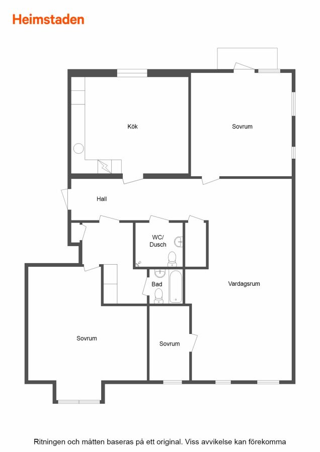 Lägenheten präglas av ljusa ytskikt med vita väggar och genomgående parkettgolv. Planlösningen är generös och funktionell med tre sovrum, där ett har direkt utgång till balkongen som vetter mot en lugn innergård. Vardagsrummet är rymligt och lättmöblerat med plats för både soffgrupp och övrig inredning. Köket är stilrent med vita luckor och fullt utrustat med spishäll, ugn, fläkt, kyl/frys samt diskmaskin. Bostaden har två badrum, varav det ena är utrustat med dusch och det andra med badkar. Tvättmaskin finns installerad i lägenheten. Förvaringsmöjligheterna är goda tack vare två separata klädkammare. Säkerhetsdörr bidrar till extra trygghet.
