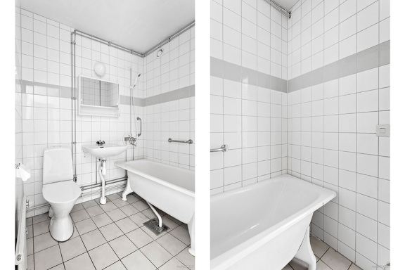 -Lägenheten är inte renoverad, dvs. äldre kök och badrum